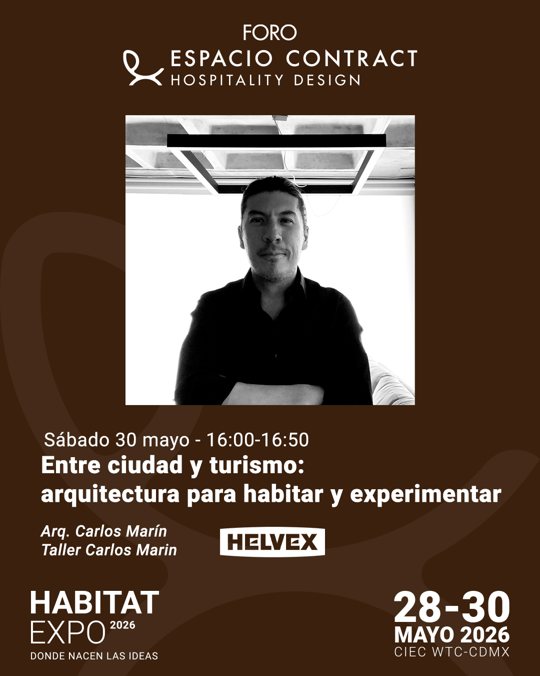 Inicio / Foro Espacio Contract / Entre ciudad y turismo: arquitectura para habitar y experimentar Entre ciudad y turismo: arquitectura para habitar y experimentarConferencia gratuita Sábado 30 de Mayo 2026 De 16:00 a 16:50 hrs. HELVEX Arq. Carlos Marin En existencia Entre ciudad y turismo: arquitectura para habitar y experimentar cantidad Reserva tu lugar SKU: Foro-CiudadTurismo Categoría: Foro Espacio Contract Product ID: 27076